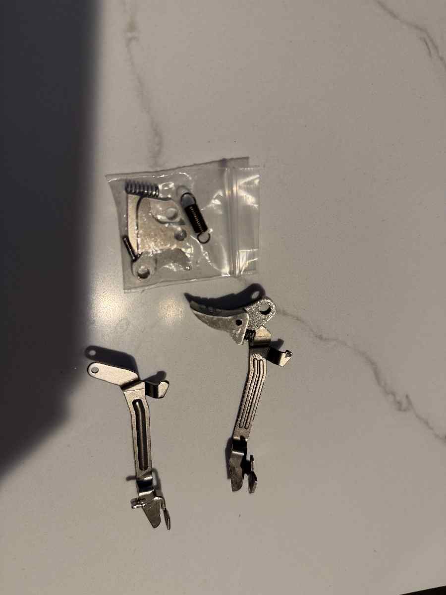 Stainless steel trigger shoe FRT, not polymer or plastic junk that fails after a few hundred rounds. Currently connected for a gen 5 setup but will include a polished crucifix for Gen 1-4.